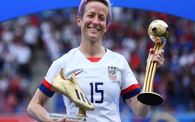 Megan Rapinoe không chỉ nổi tiếng với mái tóc tím cá tính, mà còn với phong cách thi đấu rực lửa và tinh thần đấu tranh mạnh mẽ. Là đội trưởng của đội tuyển Mỹ vô địch World Cup 2019, cô giành Quả bóng Vàng và Chiếc giày vàng cùng năm đó.